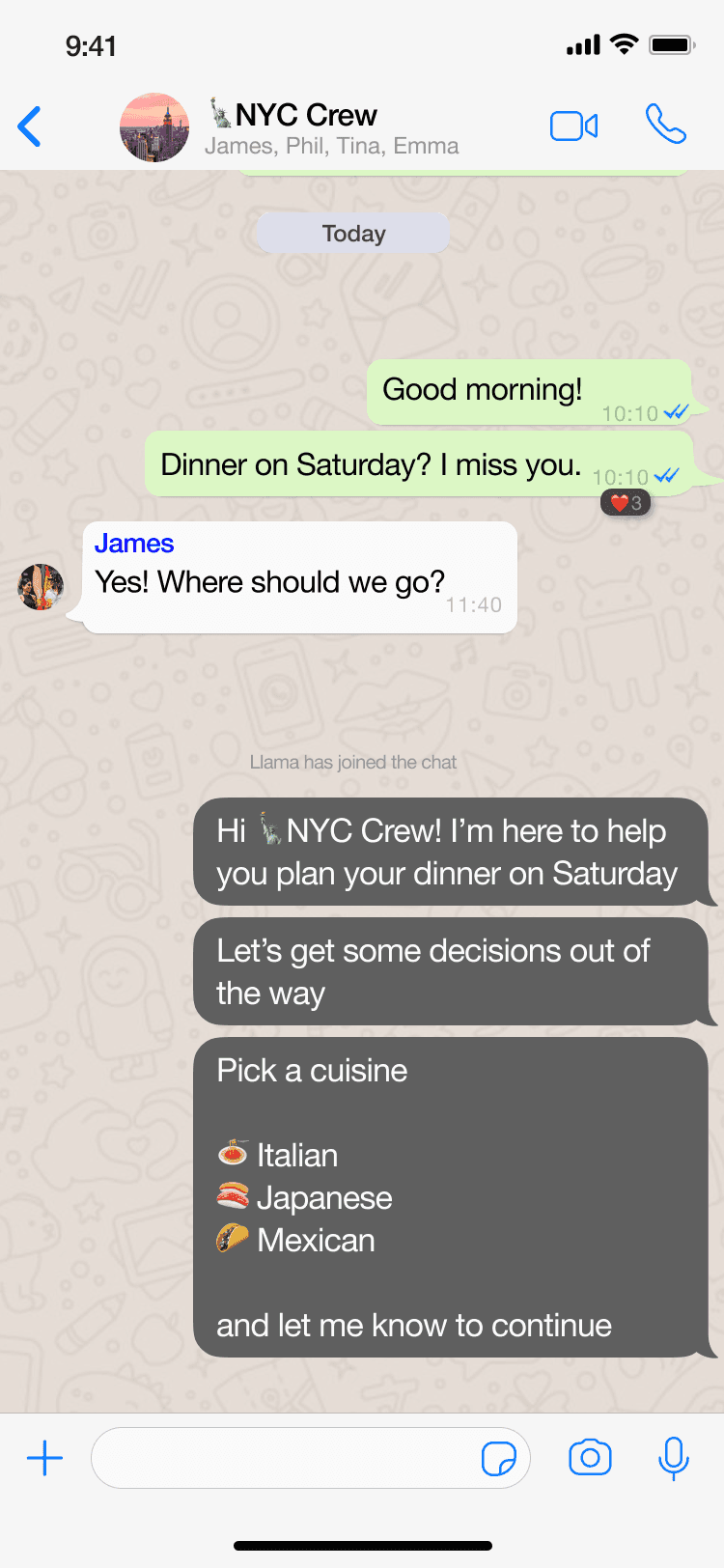 Over 10 weeks, I led the full product development cycle to address a familiar but underserved problem: making group plans actually happen in messaging apps like WhatsApp.